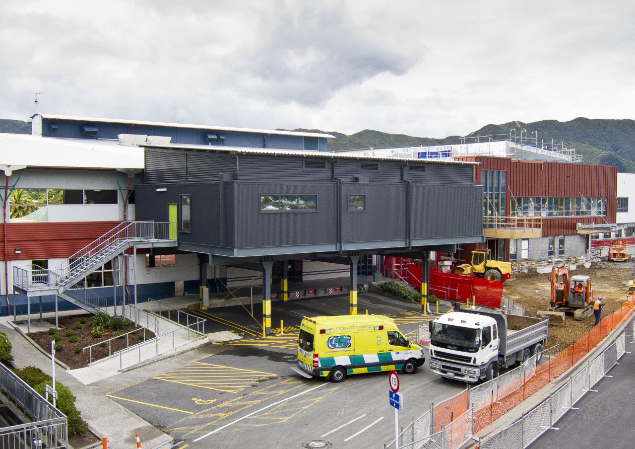 This fast-tracked project at Hutt Hospital involved construction and installation of a pre-fabricated temporary operating theatre and recovery suite, to be attached to an existing clinical building.