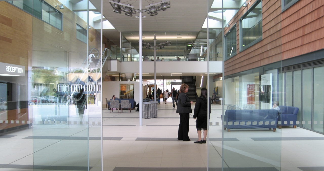 The new hospital is relatively low rise with a full basement carpark; reception and ambulatory services on the ground floor; theatres and support on the next podium floor and wards and Womens services on the 5 floors above. The building relates strongly to its residential neighbourhood and is welcoming and airey.