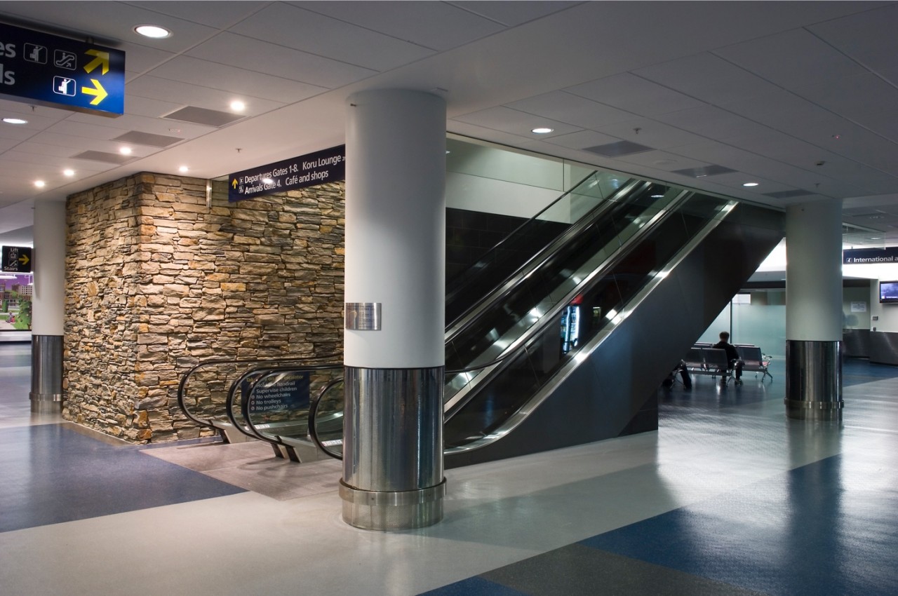 Internally, local schist is used around the central circulation spine, which anchors the planning. Generous views to the runway provide an engaging and constantly changing backdrop to the passenger hall.