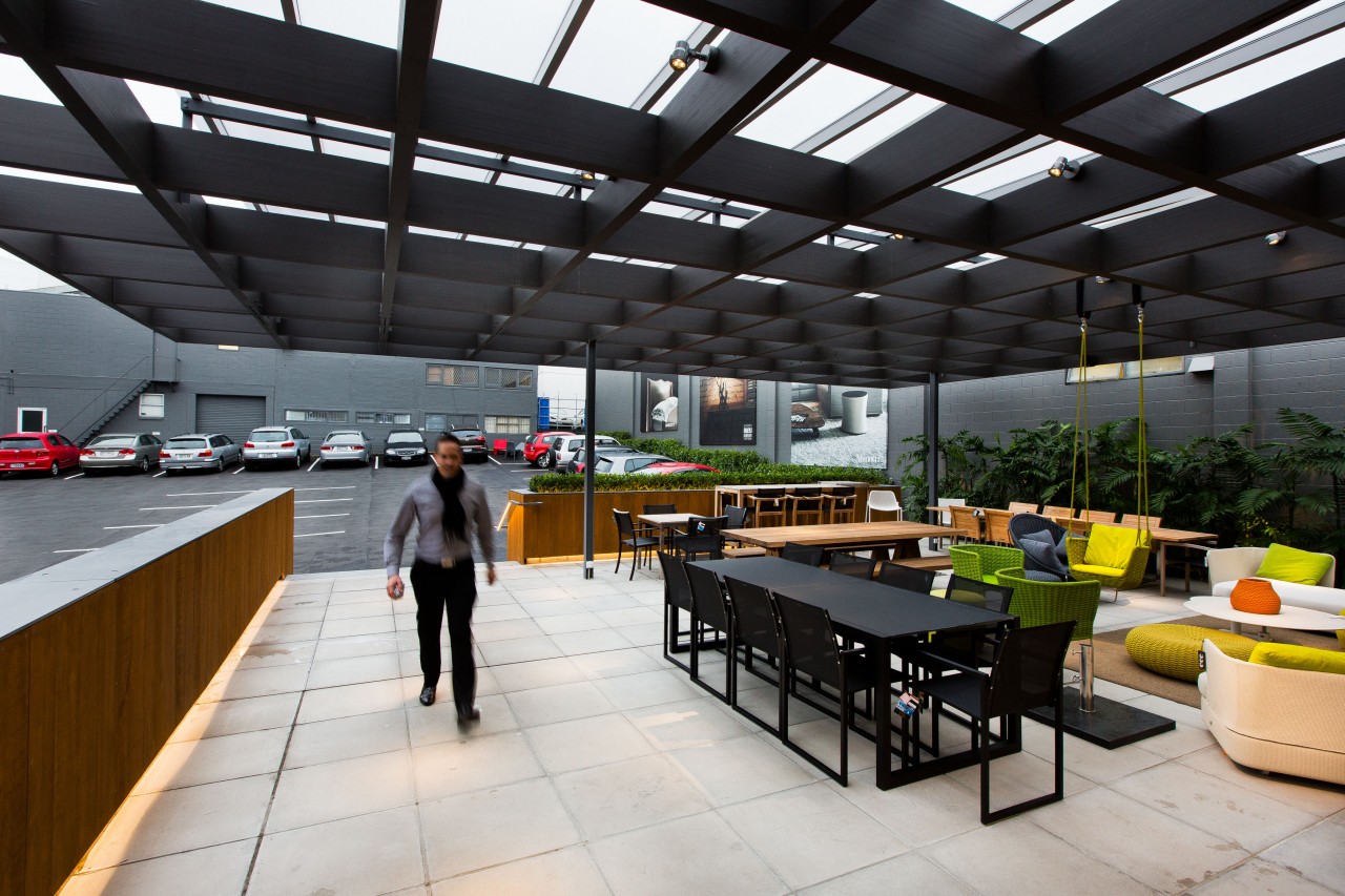 ECC wanted to create a memorable room whilst maintaining a backdrop of simplicity and functionality. Used primarily as ECC’s exterior display room, the new canopy area doubles as a social space during the warm Auckland evenings.