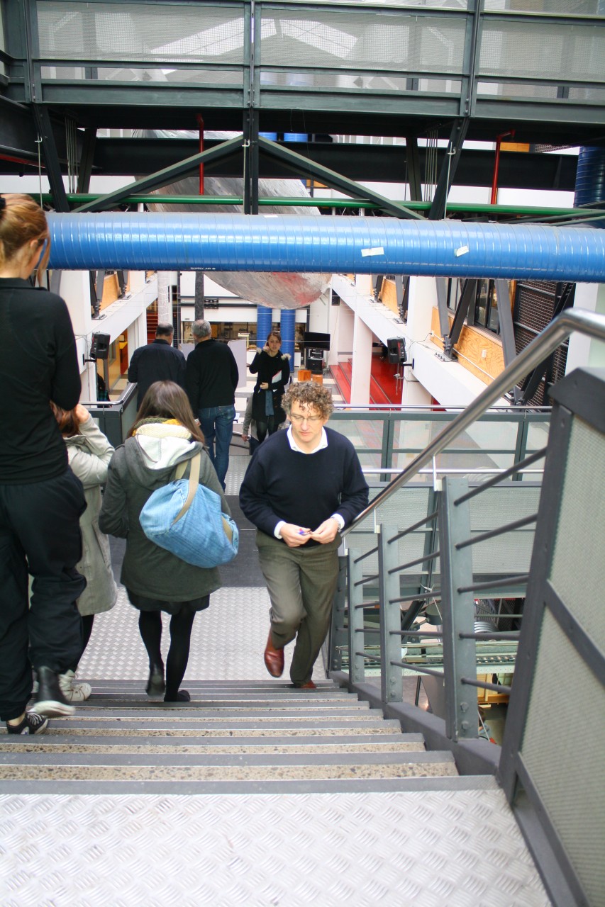 The atrium and the large stair that runs up through it, are where the two schools, students and staff meet and interact.