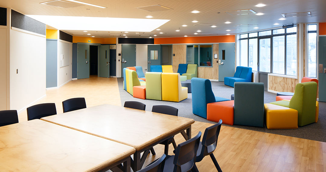 The scheme involved a new extension to the south-east of the existing buildings, with internal links to the existing buildings enabling sharing of common spaces such as classrooms, interview spaces and an all-weather gymnasium.