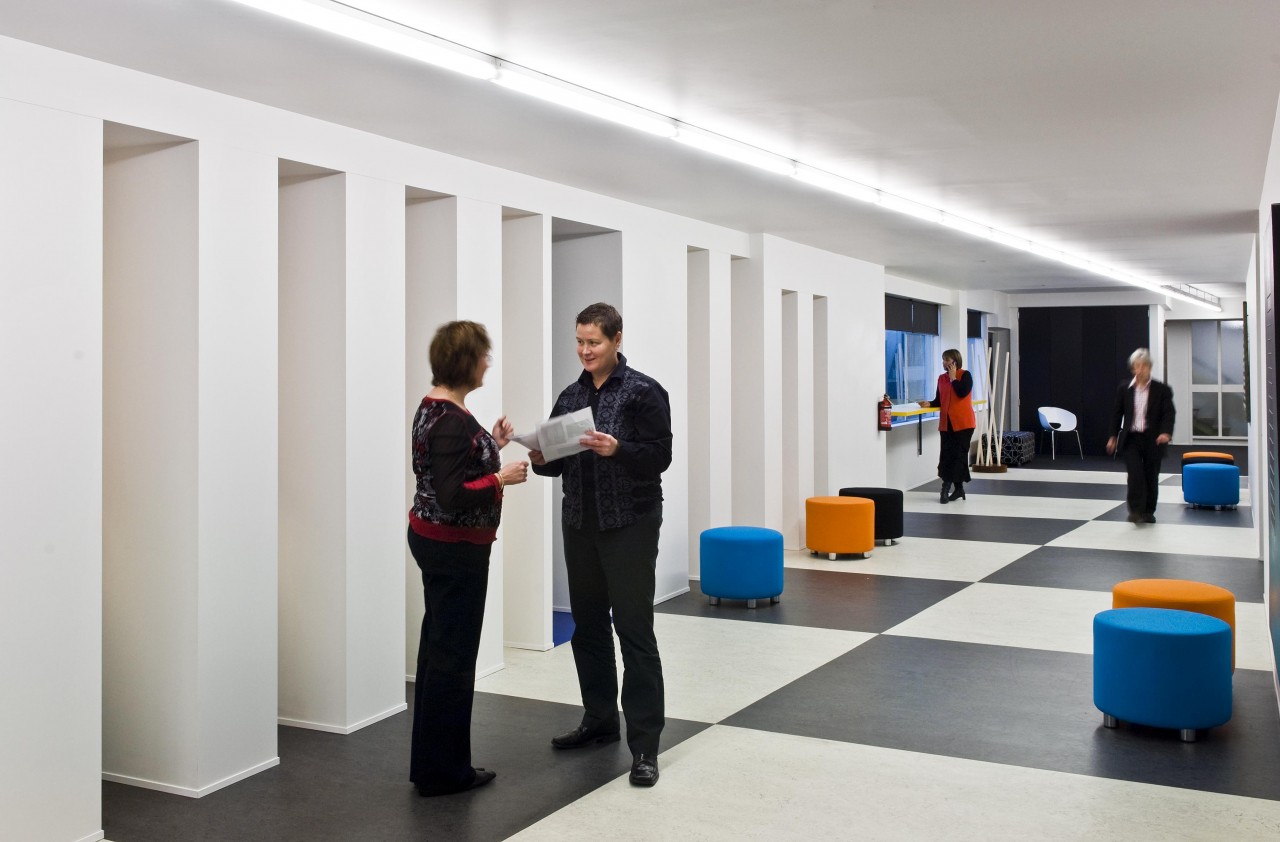 To gain the most from the modest budget, the design carefully worked around existing building elements and services. The offices and teaching spaces needed to provide flexible learning and meeting areas to suit a variety of training and teaching models.