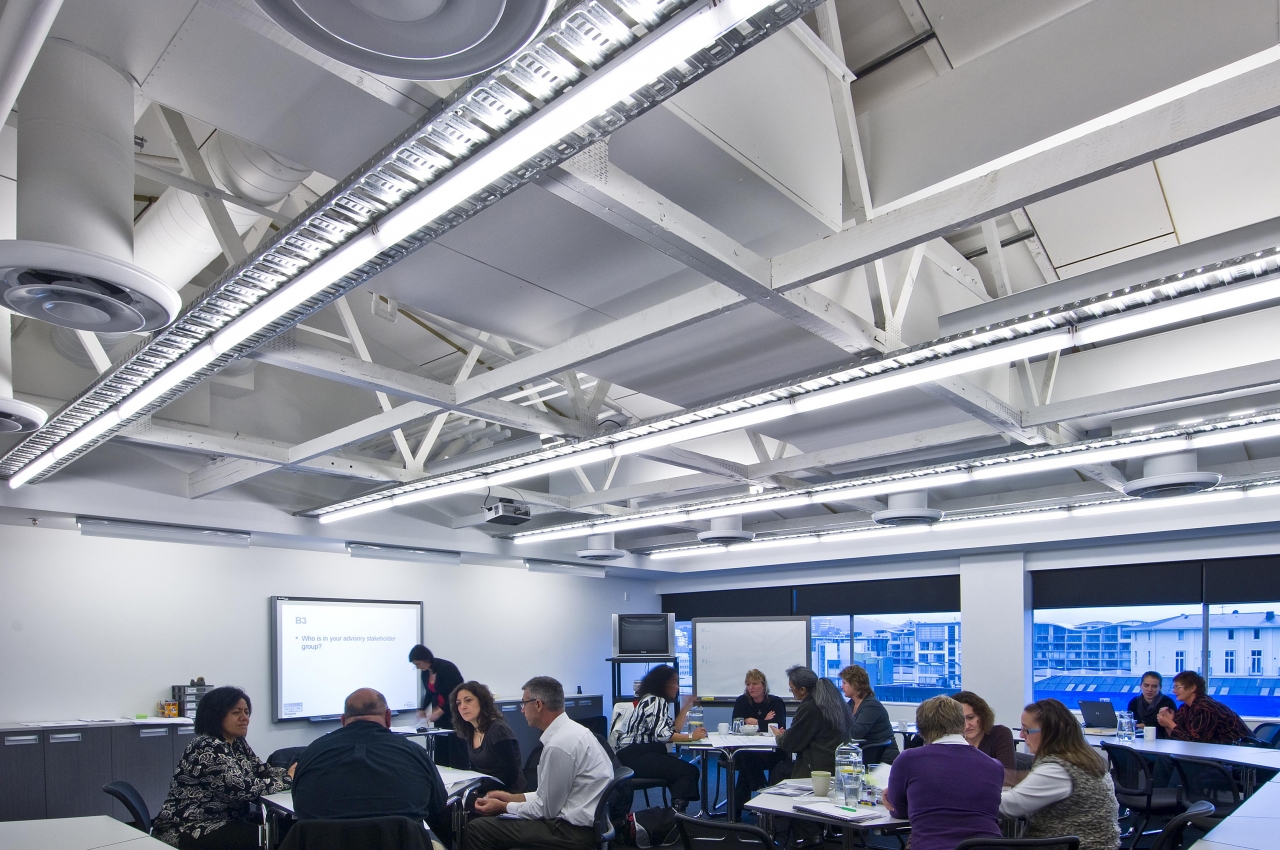 The fitout emphasised the importance of breakout spaces and common areas in training and learning environments. Such spaces provide opportunities for sharing ideas, connecting with other people and are an important adjunct to the formal teaching spaces.