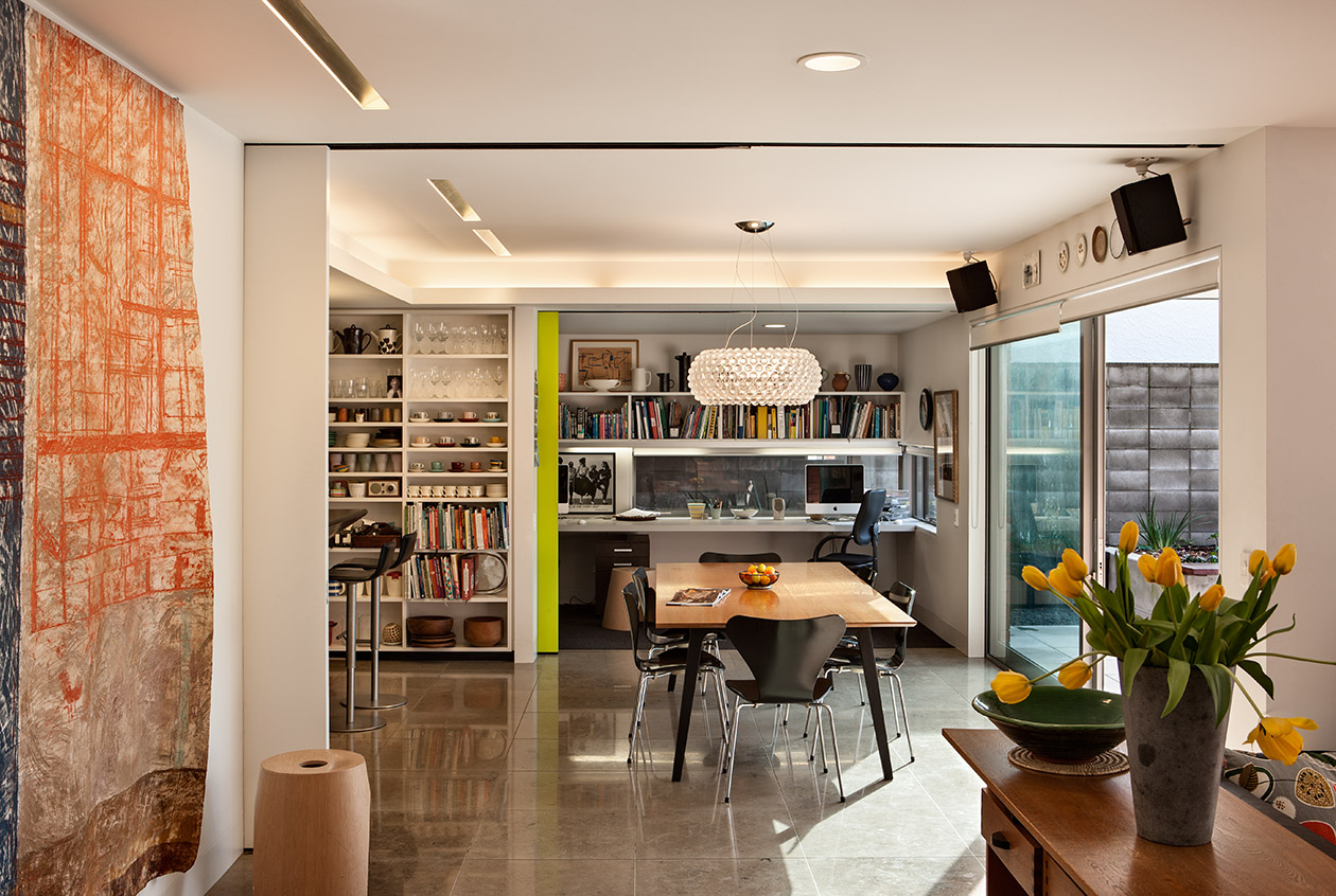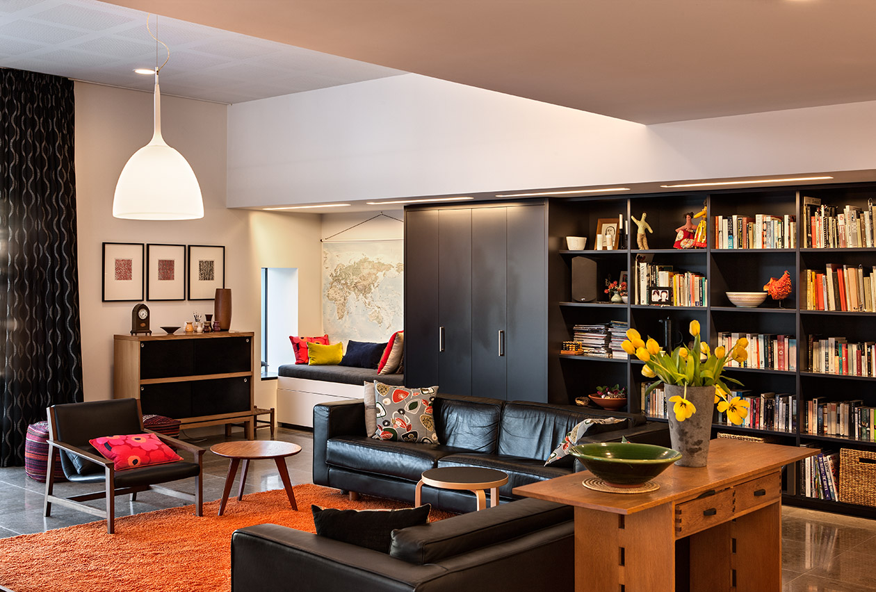 The sustainable approach included: reuse of the existing house where possible, energy efficient lighting, natural ventilation, heat pump technology for hot water and in slab heating, high insulation values and double glazing, rainwater harvesting for irrigation and good acoustics throughout.